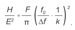 Данный метод в существенно меньшей степени подвержен влиянию неровностей поверхности по сравнению с методами квазистатического вдавливания, однако требует априорной информации о значении модуля упругости. Конечная зависимость, позволяющая производить расчет такого отношения по экспериментальным данным, выглядит следующим образом: