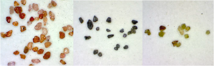 Гранатовый песок с частицами размером 150-300 мкм имел в своем составе различные цветовые фракции (см. рисунок 1):