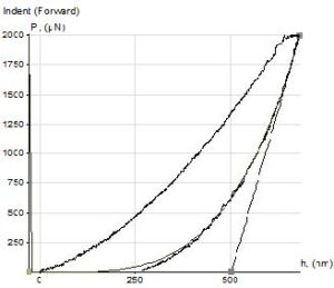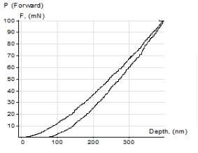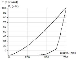 • Проведение инструментального индентирования с нагрузками 0.2-2.5 Н (примеры кривых нагрузки-разгружения показаны на рисунке 2);