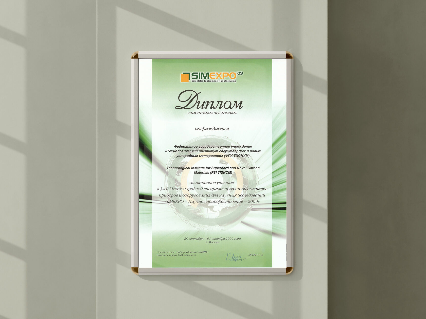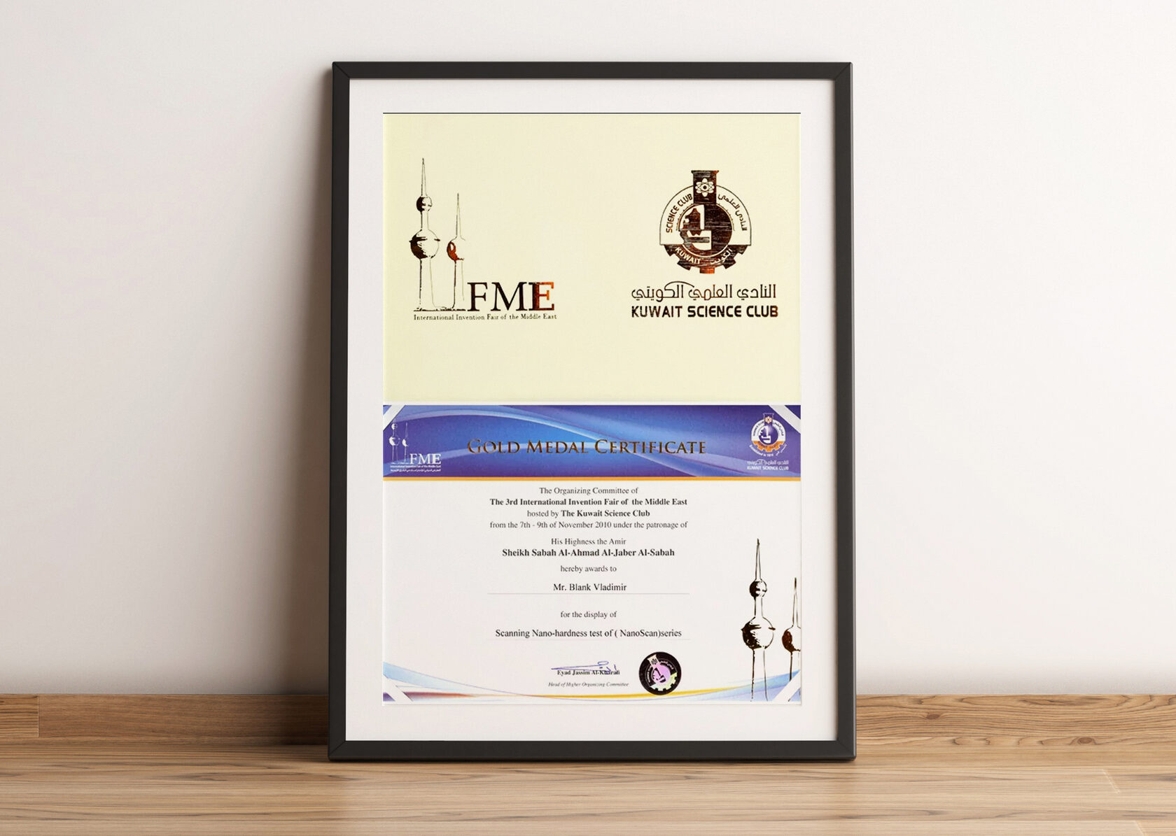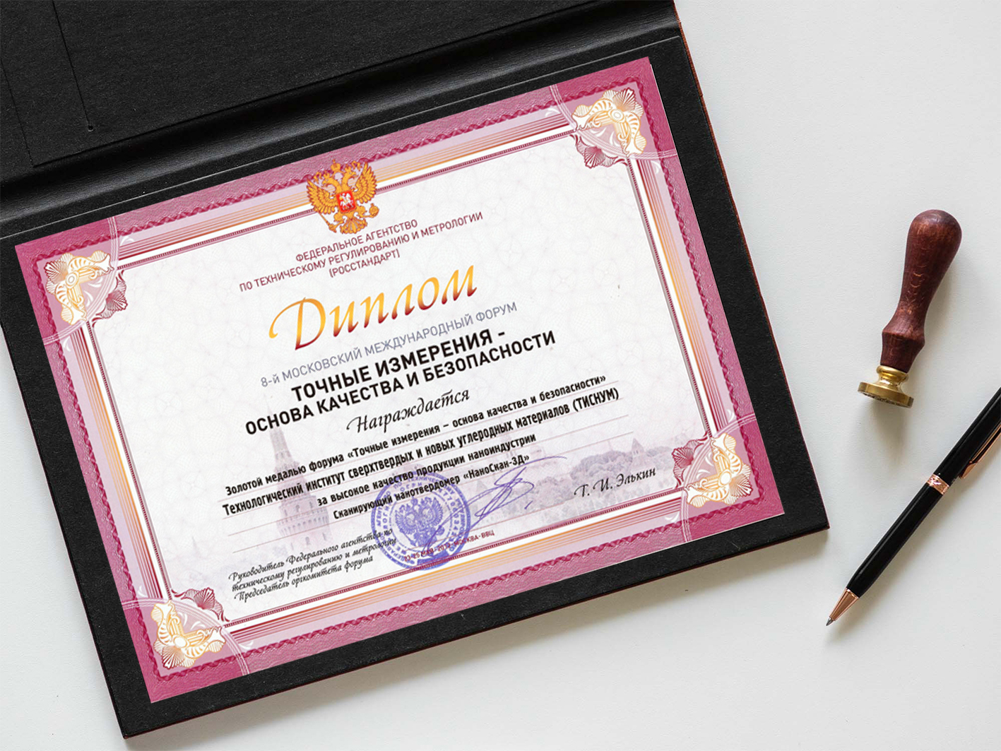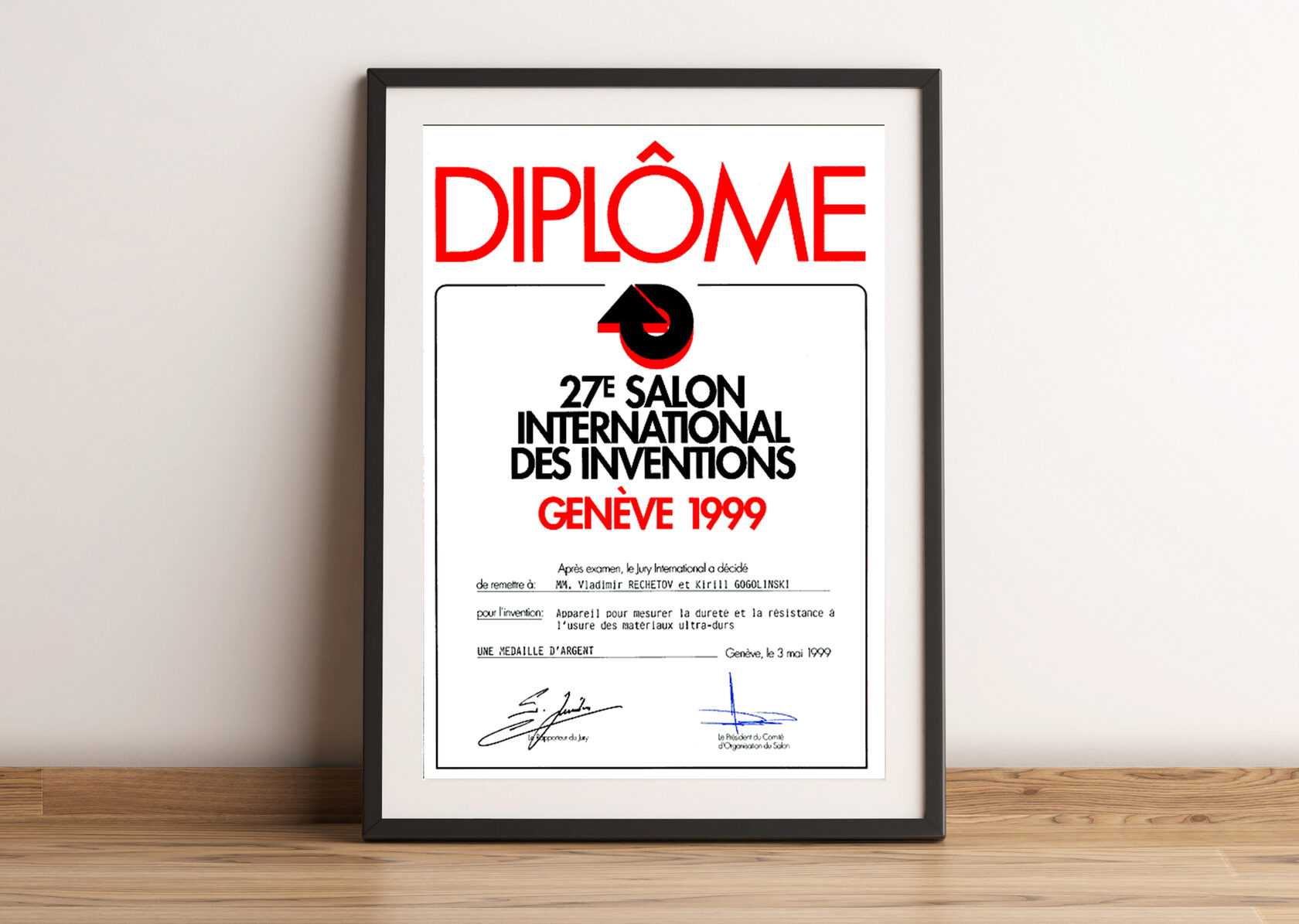 Диплом за разработку микротвердомеров и нанотвердомеров серии НаноСкан