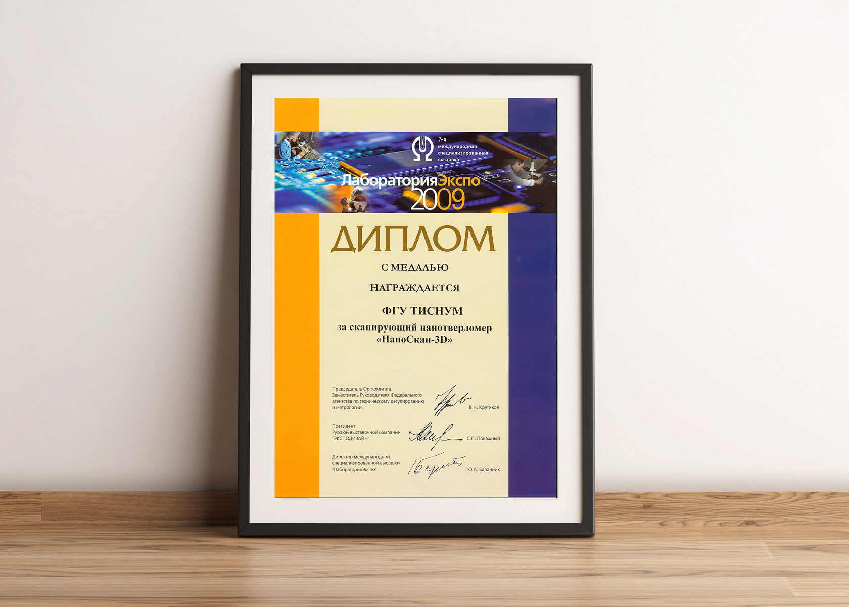 Диплом и медаль за сканирующий нанотвердомер «НаноСкан»