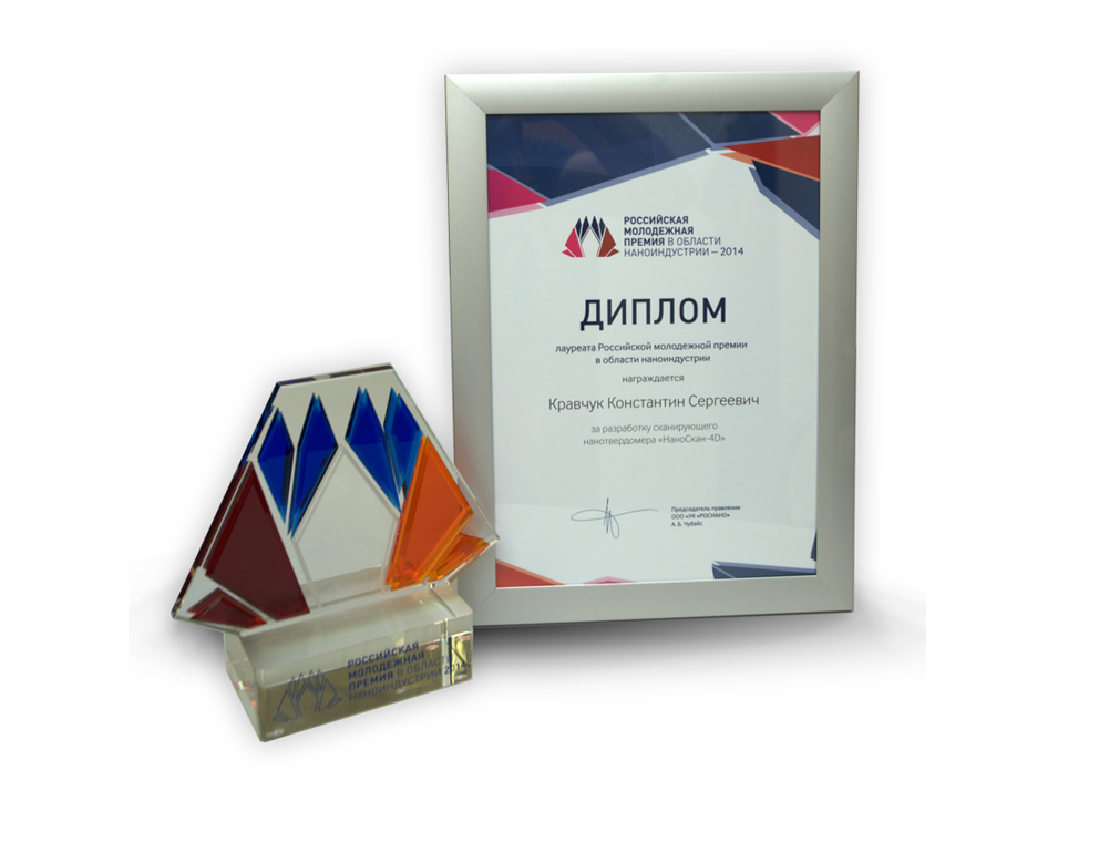 Участники команды НаноСкан отмечены российской молодежной премией в области наноиндустрии за разработку сканирующего нанотвердомера «НаноСкан-4D»